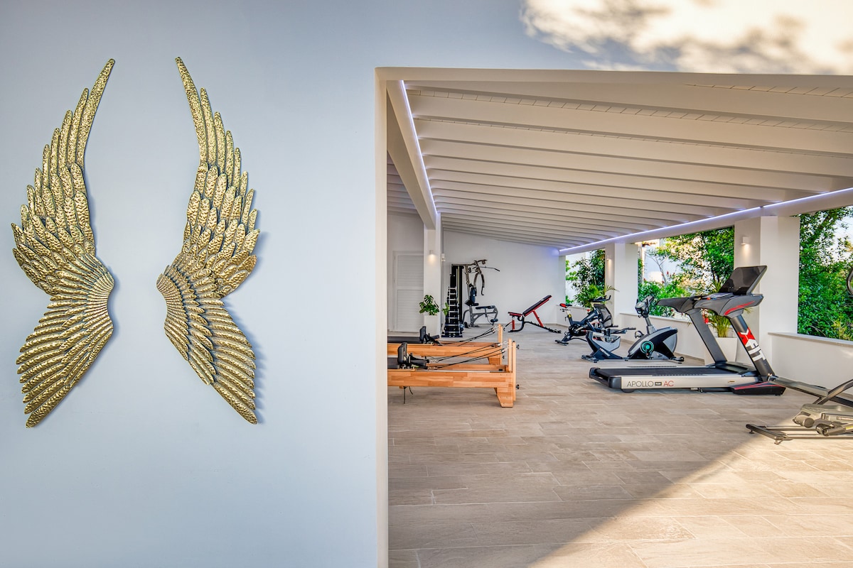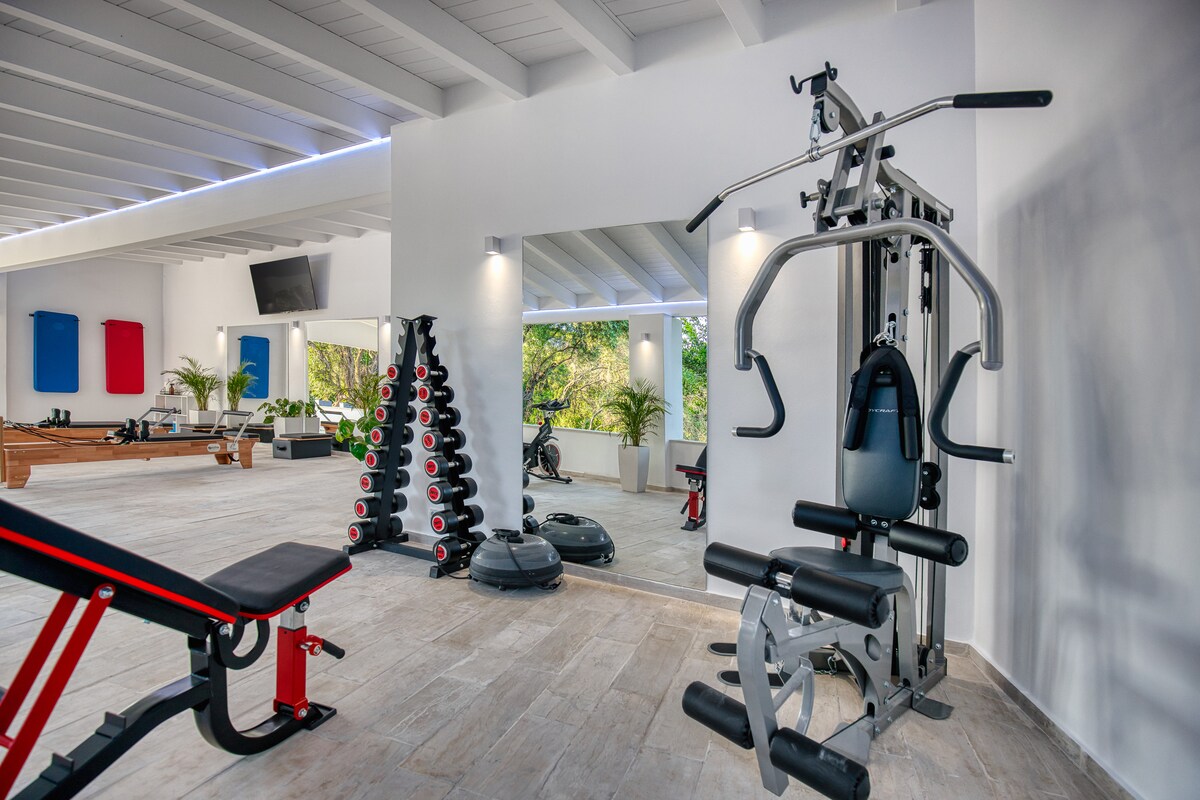 The Hestia Gymnasium, equipped with modern fitness machines, Pilates reformers, within a yoga/meditation garden