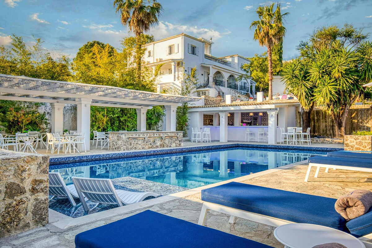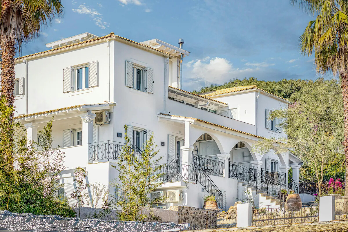 Stay in the Poseidon Room at Villa K Boutique Hotel—a serene first-floor double room with partial sea views and a private balcony. Featuring a plush King-size bed, ensuite bathroom with walk-in rain shower, Smart TV, air conditioning, and fast Starlink Wi-Fi, it's perfect for couples seeking stylish comfort. Guests enjoy full access to the pool, jacuzzi, gym, restaurant, bar, and boutique—just 15 minutes from Corfu Town for the perfect peaceful retreat.
